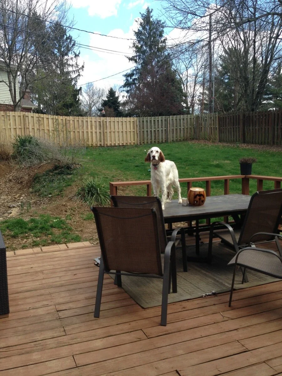 Arial is a city girl, so she loves to come out here to our place where she can be a country dog. She constantly hunts for birds and loves to be able to run. We co-own her and she was bred while her Dad was away at law school.